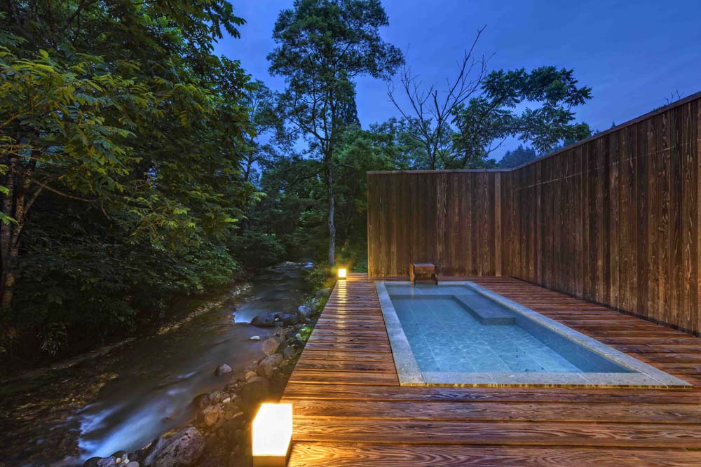 清流を望む露天風呂から四季折々の自然を楽しめます。20室のうち12室は趣き異なる露天風呂付の客室で存分に温泉を楽しめます。懐かしくも温かいおふくろの味を、懐石風郷土料理でどうぞ。